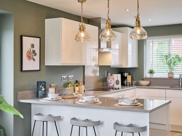 Luckily, a Persimmon kitchen gets you off to a great start. Our range of house styles includes kitchen layouts ideal for busy households, including open plan living, kitchen islands and utility rooms. Then, you can choose kitchen cabinet colours, worktops, tiles and more from our Finishing Touches options and upgrades. Finally it's the fun part - moving in and decorating your new space!
