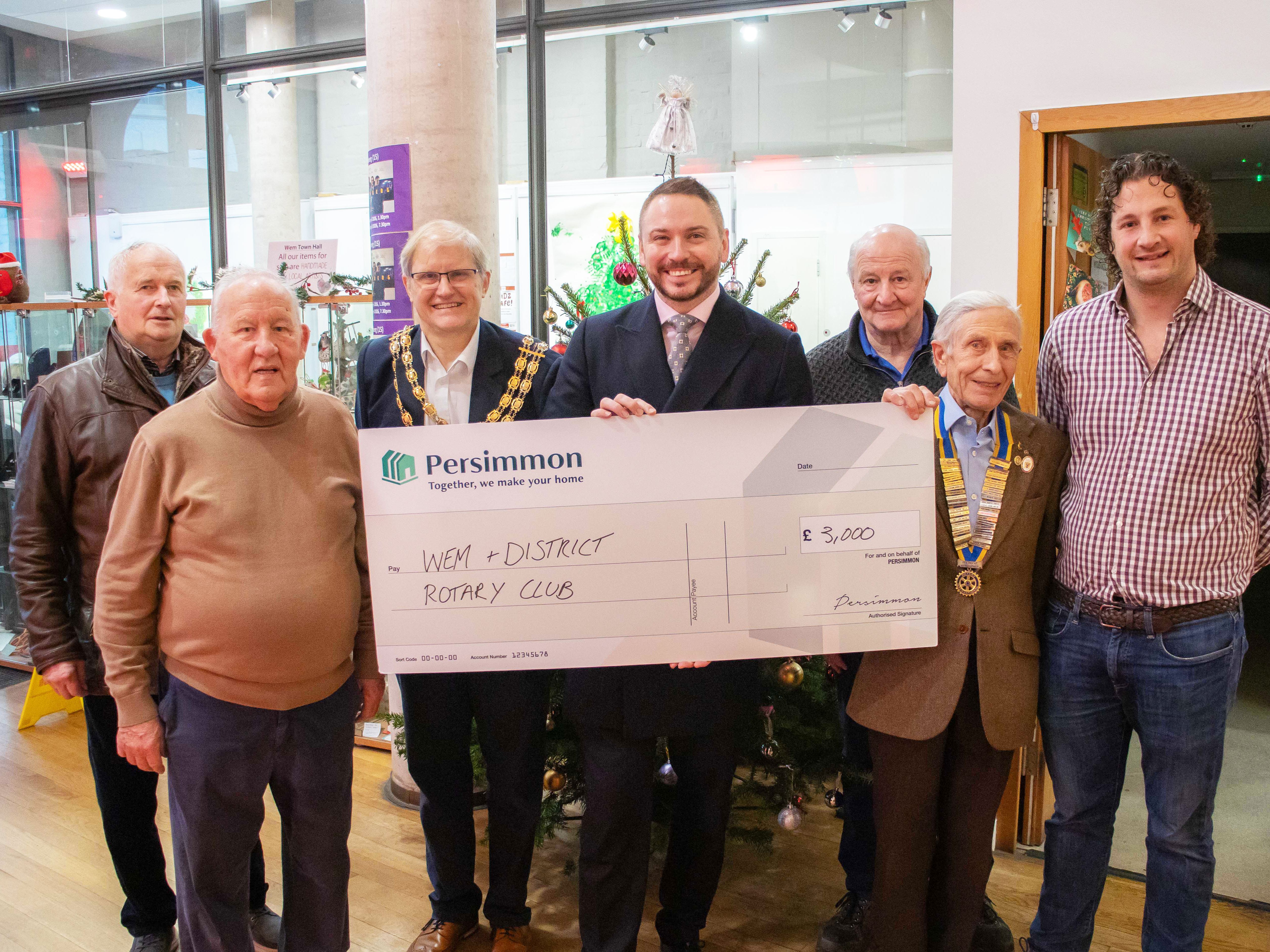 Wem Town Mayor, Cllr David Parry said “The Rotary Club of Wem and District does so much for the Town and surrounding areas, so as Town Mayor I was delighted to see it receiving such generous support from Persimmon. The monies donated by Persimmon via their Community Champions Programme will enable the hard working members of Wem Rotary to do even more for local people.”