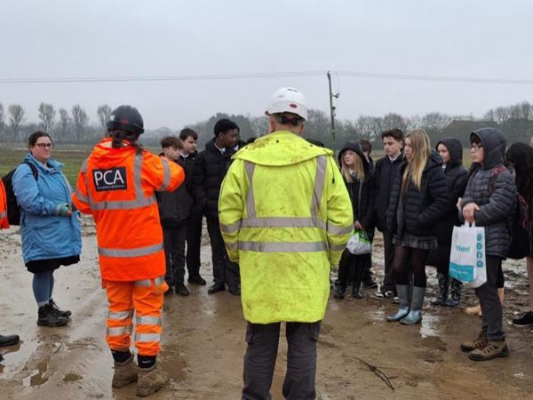 Students from Caister Academy were given a behind the scenes look at a live construction site during a visit to Persimmon Home’s development at Caister, Mulberry Park.